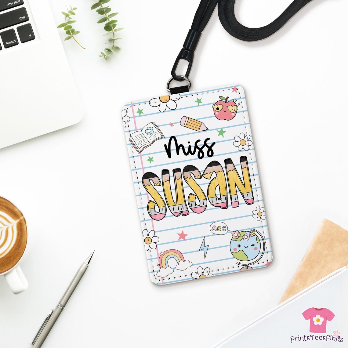 Custom Id Badge for Teacher, These are adorable and stylish for the school year. Makes wonderful Back to school gifts for Teachers, Teacher Christmas Gifts, Valentines Gifts, Teacher Appreciation. Styles are Pencil Id Badge Holder, Paper Id badge Holder, and Composition ID Badge Holder. You are receiving 1 Custom ID Badge Holder.